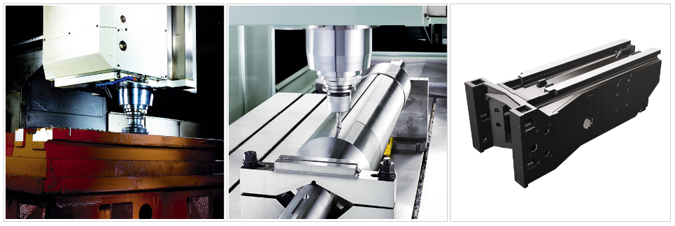 橫梁滑座加寬,機頭滑座切削時更穩定,立柱前跨設計。